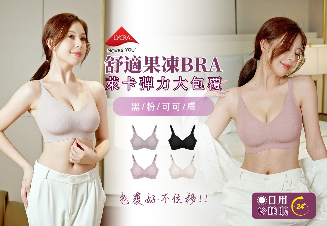 台灣萊卡彈力包覆式果凍內衣伴妳24H:日間顯瘦,夜間舒眠液態支撐取代鋼圈,更舒適零感加高大包覆12cm,有效收肉▸ 0.5cm透氣杯墊 → 清爽顯..